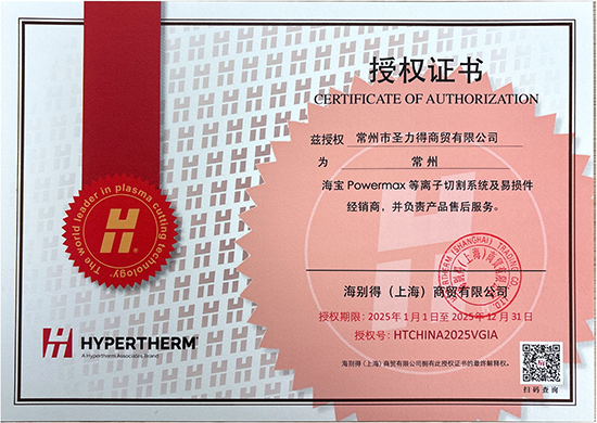常州市圣力得商贸有限公司是一家集数控等离子/激光切割机,自动焊接设备,全自动铣边机,机器人的专业销售和技术服务为一体的公司。本公司是世界品牌Hypertherm(美国海宝)公司的授权经销商?! 」臼且恢Ъ际跷榷?、服务优良、富有朝气的精英团队。公司致力于将国外先进的切割跟焊接设备和技术介绍给中国的机器制造商和终端用户,并为用户提供品质的产品和完善的售后服务?! 」局饕硪韵虏罚骸 ?.美国海宝Hypertherm等离子机用电源,手持电源,原装易损件及备件  2.韩国赛拉科(CERACO)铣边机,南京顶瑞自动焊接小车  3.迈誓坦(MicroStep),日本田中(TANAKA),武汉法利莱(FARLEY-LASERLAB),江苏博大品牌等离子切割机,激光切割机及维修配件。  4.美国海宝,美国飞马特,凯尔贝等原装正品易损件及配件  5.激光切割机,等离子切割机,火焰切割机升级,安装与调试及技术升级改造项目  6.机器人焊/切生产线  热忱欢迎广大用户前来询价及洽谈。